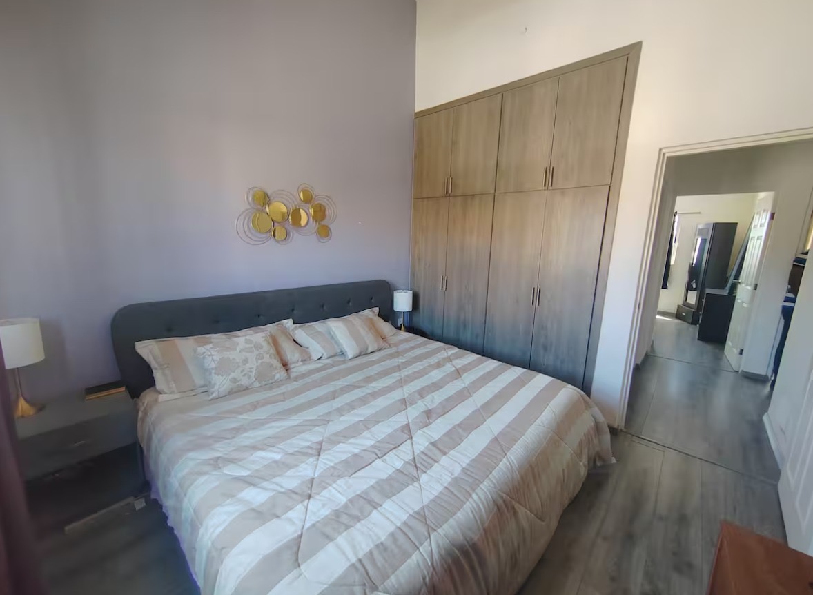 CASA AMUEBLADA, CON 3 HABITACIONES, PRINCIPAL CAMA QUEEN SIZE, CON BUROS A LOS COSTADOS CON LAMPARAS, CLOSET Y MURBLE FRENTE A LA CAMA, CON BAÑO COMPLETO Y TINA ESTILO JACUZZI, RECAMARAS SECUNDARIAS, UNA DE ELLAS CON CAMA MATRIMONIAL BUROS ARMARIO CON ESPEJO, COMODA Y CLOSET, 3ER HABITACION LIBRERO, ESPEJO