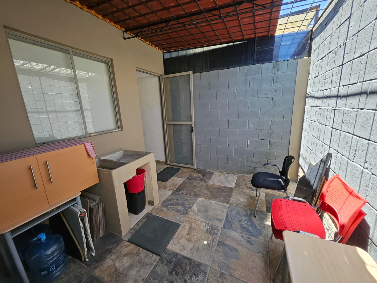 Casa Equipa, Cuenta con: Cancel de entrada y bardas a los costados, piso en cochera, cámara de seguridad y protecciones en ventana y puerta, Lámparas de decorativas en primer piso, cocina integral con parrilla de gas y campana, Patio con Jaula y piso de porcelanato.