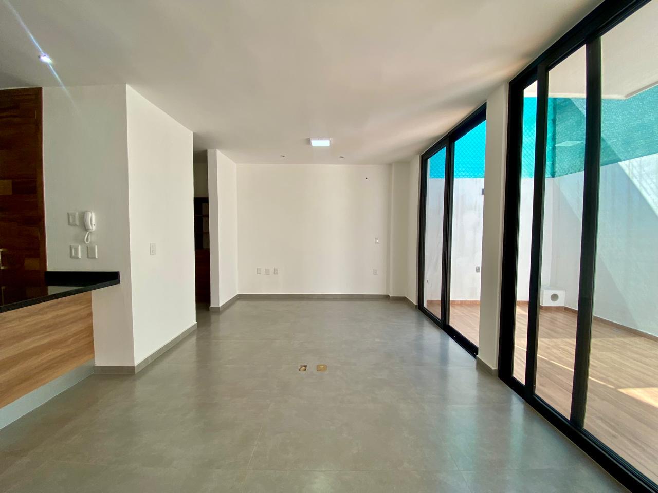 Departamento moderno en tipo Loft en PB, con 56.10 m2 de interior y 18 m2 de exterior (patio), totalmente nuevo, en excelente ubicación, a espaldas de la plaza Urban Center y del hotel Hard Rock. Está ubicado en Av Inglaterra, es estilo loft, cuenta con vestidor, baño completo, área de lavado, hermosa cocina integral con granito, balcón y estacionamiento techado para 2 autos.